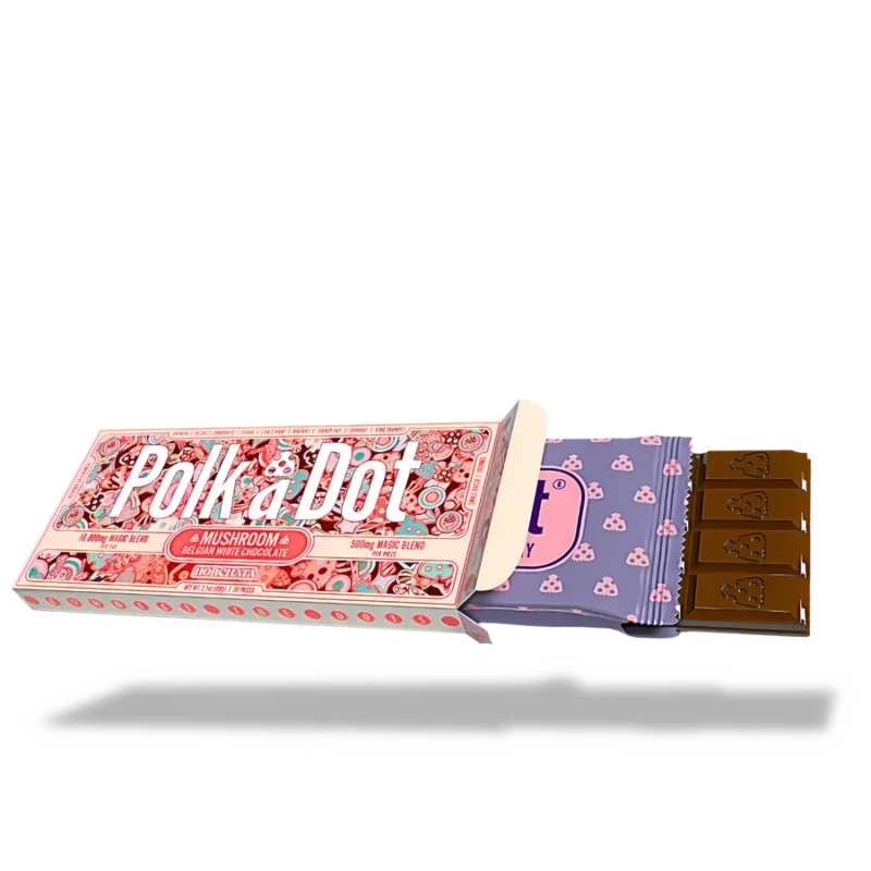 Every Chocolate Bar Features A PolkaDot Logo Imprinted On Each Square.