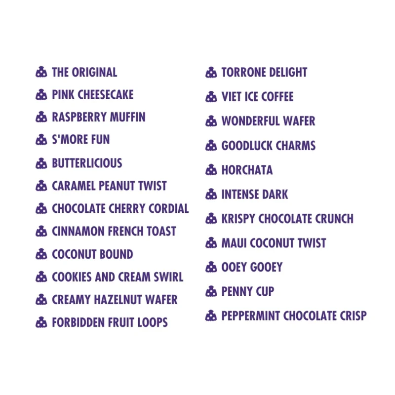 If the flavor name has any mention of brands like Snickers, Reese’s, Twix, Rice Krispies, etc.